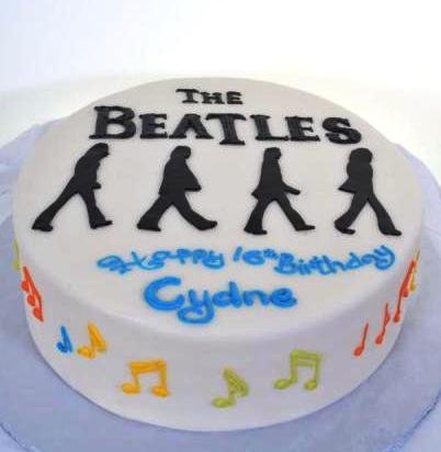 For the avid Beatles fan, there is nothing more instantly recognizable as the “Fab Four” walking across the famed “zebra crossing” outside the “Abbey Road” recording studios.Even in silhouette, it’s clear who these images represent.A simple single tier in pristine white serves as the backdrop against which the familiar profiles of John, Ringo, Paul, and George are projected.Musical notes in psychedelic colors ornament the side of the cake and will certainly compel someone to turn up the volume!