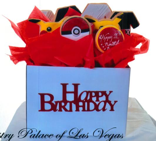 “I want the Pok-e-mon!” “I want the t-shirt!” When you offer a fun and colorful assortment of custom cookie ‘pops’ like this, not only is it easy to serve (just grab one – no plates, no forks necessary!) – but it makes each choice an adventure for both the eyes and the taste buds. Take literally any sport, hobby, event, occasion – and let us turn it into an artistic presentation of a cookie bouquet for you. Our bakers have the decorating talents you love, and you have the ability to make this confection as personal and colorful as your imagination will allow.