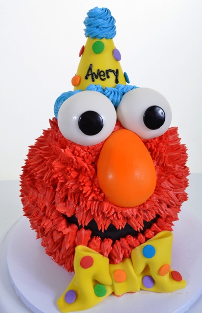 Elmo is one of the most loved characters ever to inhabit “Sesame Street.” Introduced in 1985, he quickly became a favorite among the traditional “Sesame Street” audience, of young children, everywhere. He is a furry, cuddly red monster with a falsetto voice, who hosts the last full fifteen-minute segment on Sesame Street, (called Elmo’s World), which is aimed at toddlers. He was most famous when the “Tickle Me Elmo” plush toy was released in 1996. It quickly became “the toy” that youngsters had to have. So, it might be surprising to have a celebrity of Elmo’s caliber make an appearance at a birthday party; nevertheless, here he is, and he’s even donned a natty bowtie and celebration hat for the occasion! This adorable novelty character design is just the thing for a toddler’s birthday celebration! “Elmo Surprise!” is a very popular piece among the younger set.