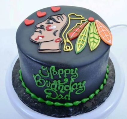 This dignified homage to a Native American honors a father, on his special day. Native American culture differs from tribe to tribe, but most of the tribes have a respect and reverence for nature in common. This profile of a proud father, feathers proudly entwined in his hair has been executed on a background of a single large round tier, covered in darkest black. It was common for Native Americans to wear feathers in their hair, as a reminder of their connection to birds, and all of the natural world. As one Native American chief explained to his son: “We do not inherit the earth from our ancestors, we borrow it from our children.” The love and regard for a father is evident in this design. “HapteeHocueneraHinigiren”, Dad!