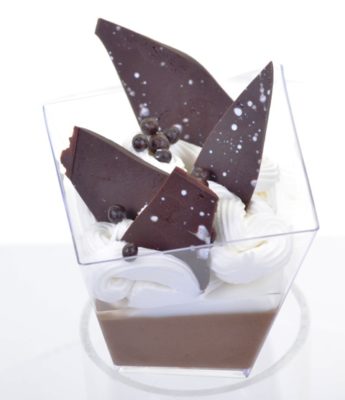 This one is, as they say, “to die for.” Human consumption of chocolate dates back to 1900 B.C. and is one of the most favorite foods in the world, today. What better reason to create an end-of-meal delicacy that is worth waiting for – even anticipating? We begin with a munificent quantity of a thick, rich mousse of dark chocolate. Next, we overlay that with a smooth covering and several large artful knotted dollops of coconut mousse that will send your senses reeling. Garnished with large shards and petit pearls of dark chocolate, this individual piece de resistance is certain to garner praise for your exquisite taste and largesse. Oh. My. Goodness.