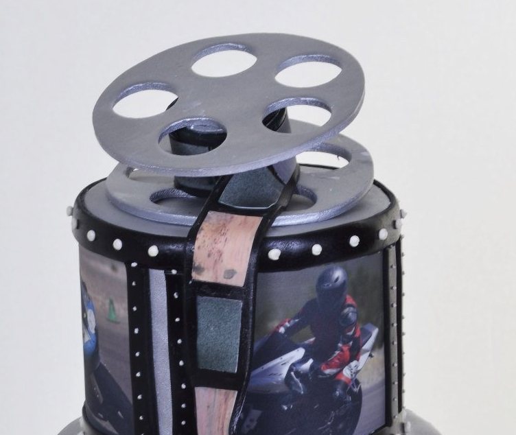Film buffs everywhere can appreciate the motif shown here – which captures both the romance and history of film in all its glory, but also includes specific imagery of the Birthday recipient’s own adventures.Three tiers of silver are adorned with personal images and a film roll that trails from top to base.A delight to cut into – but better get some film of it first!