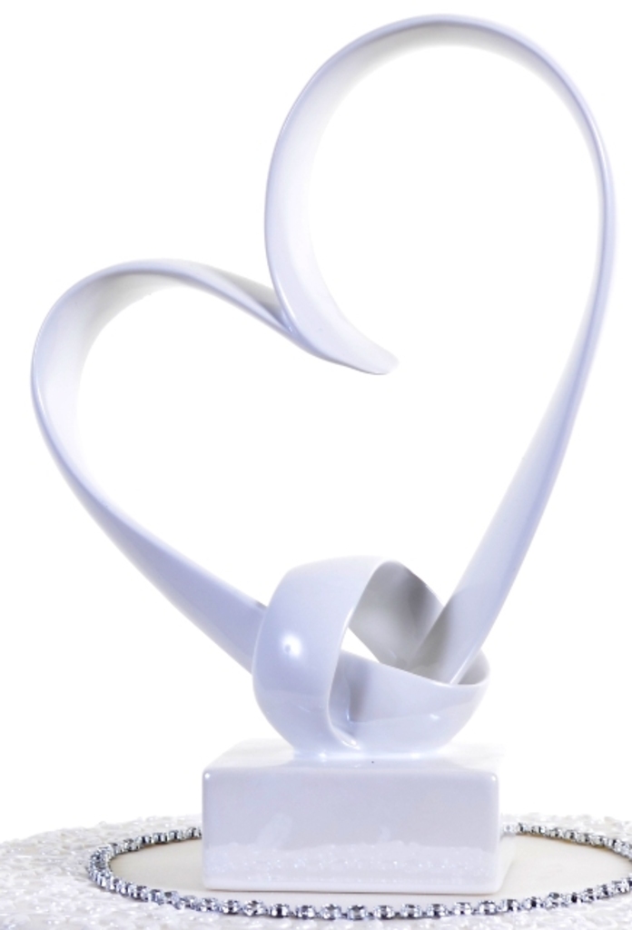 This artistic ribbon sculpture of a heart with no beginning or end is a classically romantic representation of “Never-ending Love”. Graceful curves meet in a soft, loose knot, forming the bottom of the heart. An elegant statement for a momentous occasion, this keepsake will be an eternal memento of the couple’s most joyous day.
