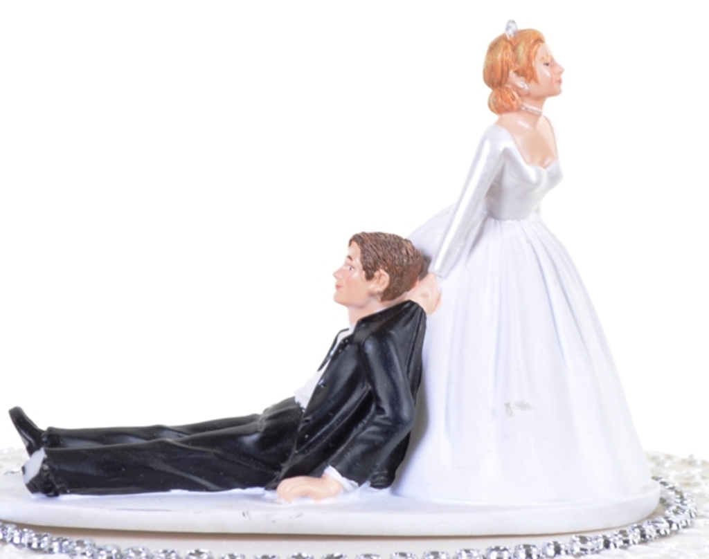 A “can do” attitude is front and center, in this piece. The bride has taken matters into her own hands, and will do whatever it takes to coax her “Reluctant bridegroom” to the altar. The groom seems to have surrendered without much ado, and the bride will have attained her objective when he says “I do!” Mission Accomplished!