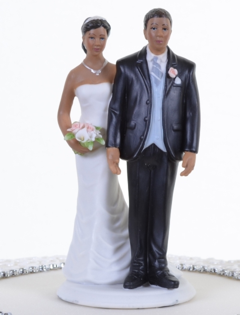 This depiction of the wedding couple is the epitome of Timeless Elegance. The delicate detail of the lilies in the bridal bouquet as well as the groom’s boutonniere set off the classic simplicity of the stylish wedding gown and the groom’s traditional ensemble. What could be lovelier?